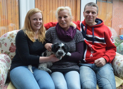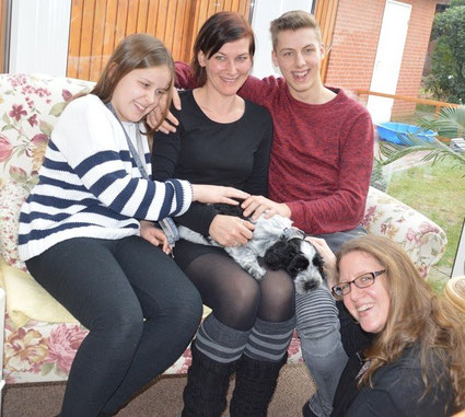 Bella wohnt nun bei der Familie Klocke in Löhne! Zusammen mit den Eltern werden Tochter Caro und Sohn Max die Kleine nun richtig verwöhnen. Schapendoes Asco genießt schon die ersten kleinen Spaziergänge mit seiner Weggefährtin.