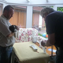 bei uns zu Hause untersucht, geimpft und gechipt. Somit haben wir den Welpen die Fahrt zur Praxis ersparen