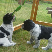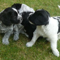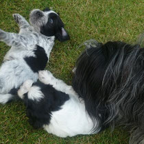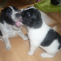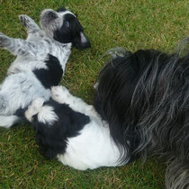 Geschwistern werden fleißig geübt, wobei auch schon mal gebellt und sogar geknurrt wird. :-)