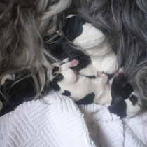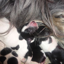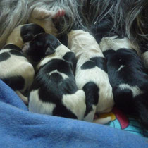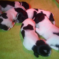 Sie war sehr zufrieden mit unseren Aufzuchtbedingungen und alle Welpen sind zufrieden, wie auch
