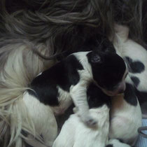 Ein kleines Mädchen aus unserem A-Wurf wird nun hier in Walsede weiterhin ihrer Mama auf Schritt und Tritt folgen....